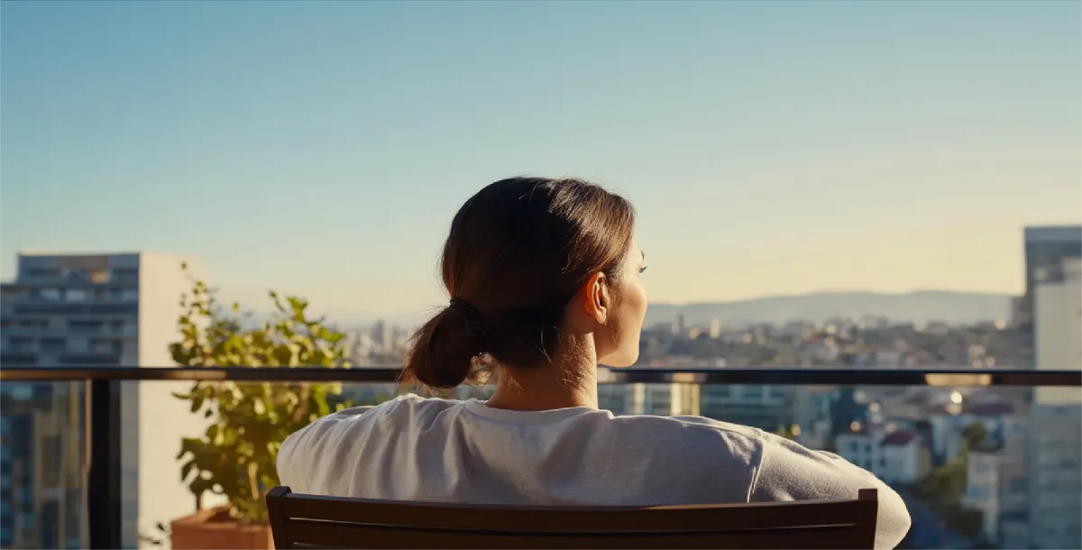 Terraza privada de 13 m² con vista panorámica: tu propio espacio abierto para desayunar con el amanecer o disfrutar cenas al atardecer.